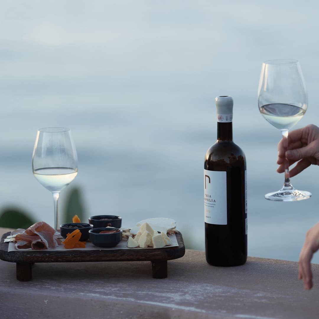 Detailed tasting of our first and most important label, Tria Ampelia, the 100% Assyrtiko wine. With vintages from the first bottling in 2020 to the most recent in 2023. Throughout this experience you will follow the evolution of Assyrtiko over time and discover its unique aging characteristics. The tasting will take place in our courtyard With a majestic view of the Aegean Sea. Discover the taste of Santorini and feel the breeze of a true jewel. Tasting includes: Tria Ampelia, Assyrtiko PDO, The full course